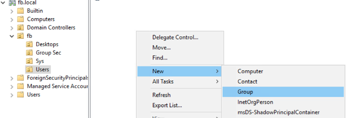 Создайте необходимое количество пользователей и группу пользователей, в которую они будут входить. Порядок создания не критичен.