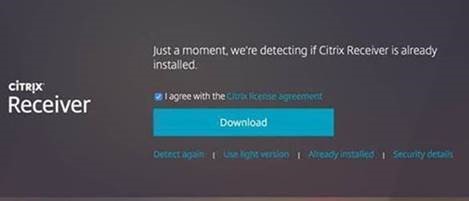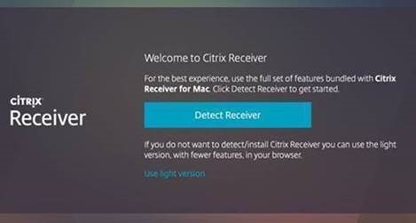Появится окно с предложением найти клиент Citrix Receiver, нажмите на кнопку Detect Receiver.