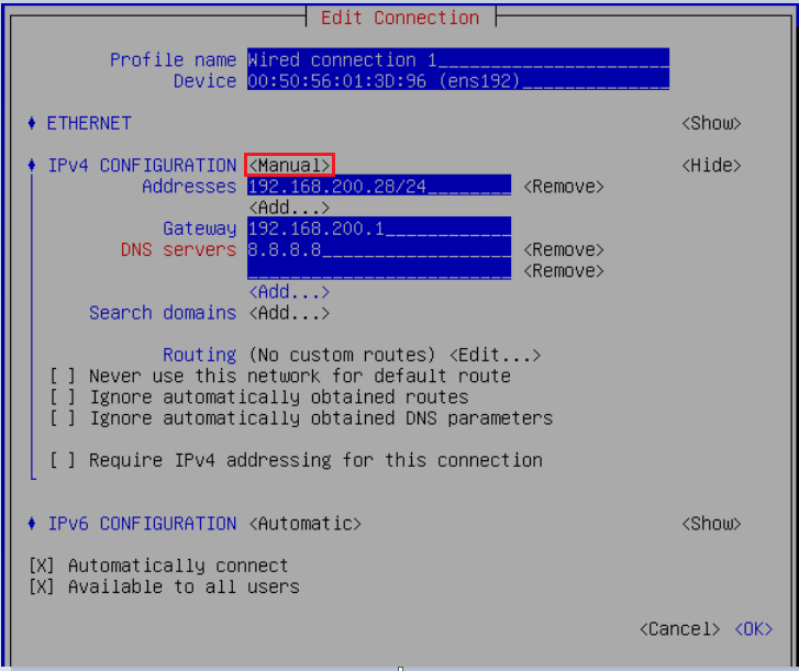 - Укажите сетевые параметры для адаптера и настройте сеть, которая имеет доступ к сети Интернет. В примере используется сеть vApp: