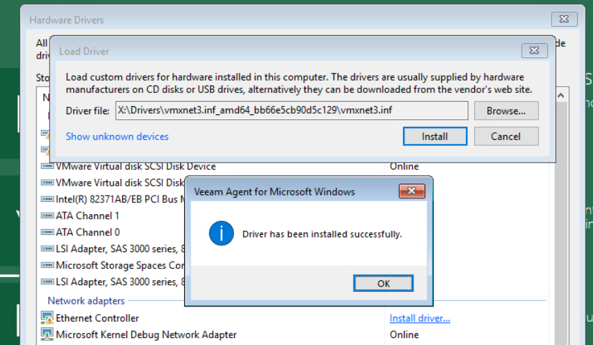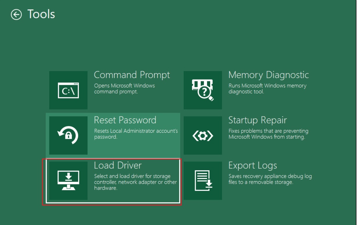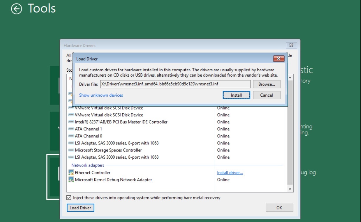 Выберите меню Load Driver и укажите драйвер для сетевого адаптера, который находится в папке