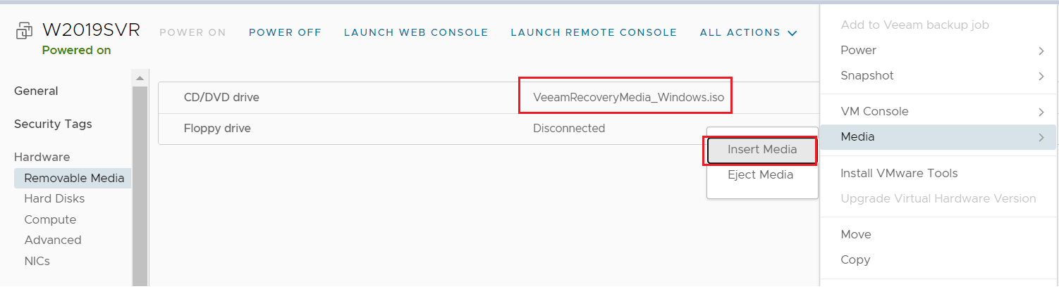 VeeamRecoveryMedia_Windows.iso) из публичной библиотеки Virtual Infrastructure под названием Veeam.