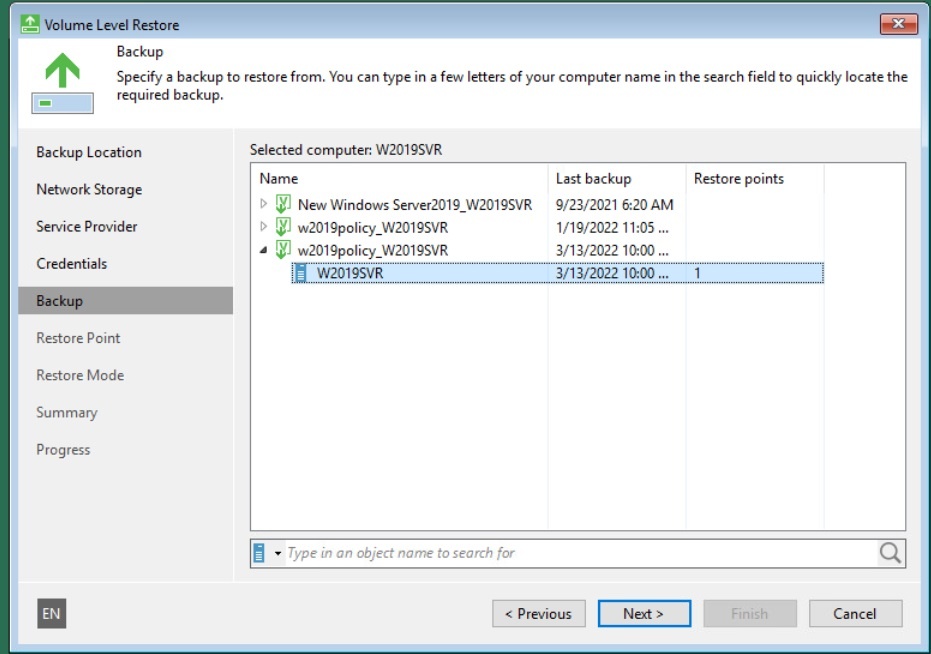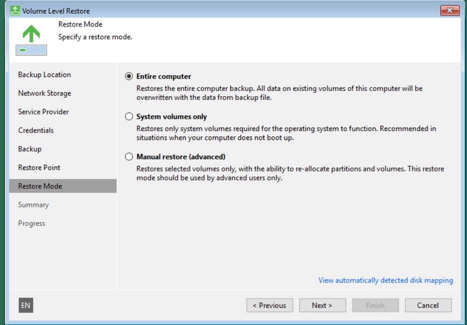 В данной инструкции рассматривается сценарий с полным восстановлением сервера — Entire Computer.