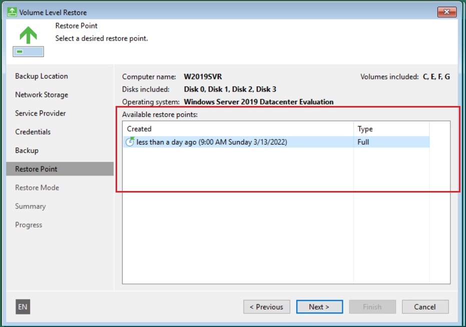 Выберите необходимый Restore Point на вкладке Restore Point.
