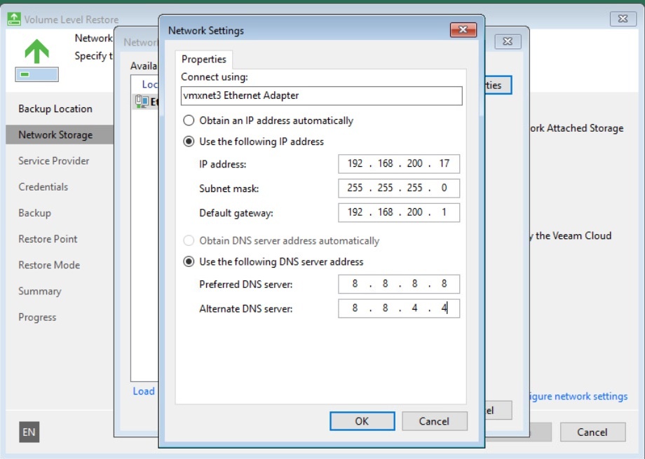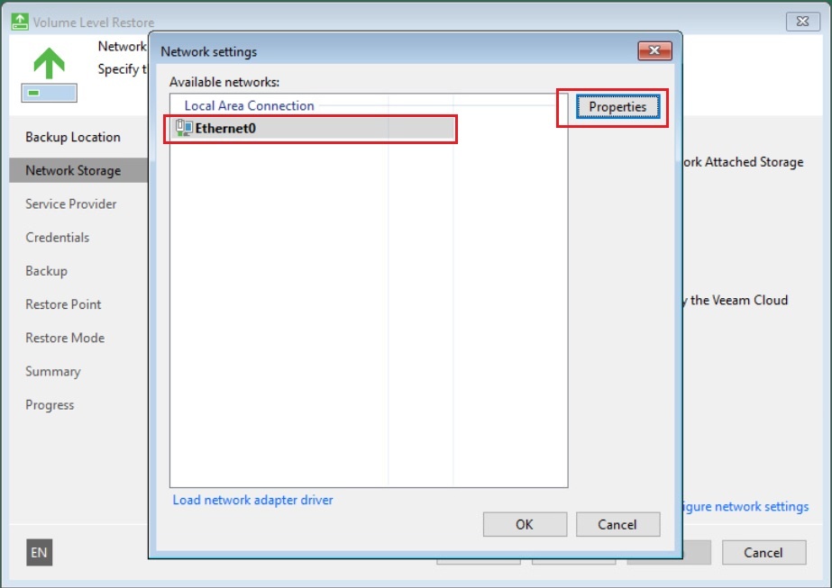 На вкладке Network Storage нажмите на кнопку Configure network settings и далее перейдите в настройки адаптера.