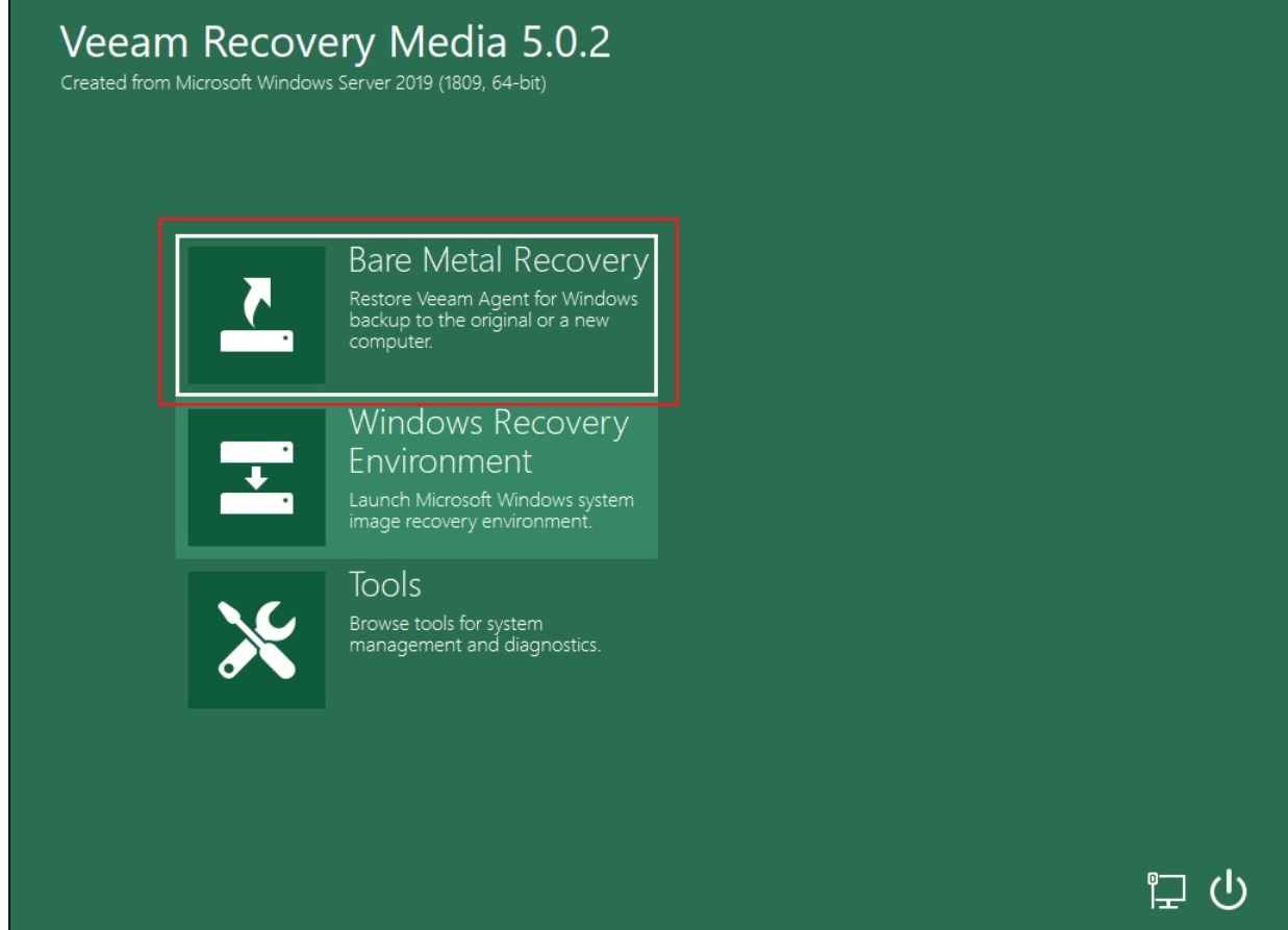 Вернитесь на стартовое окно и перейдите в раздел Bare Metal Recovery.