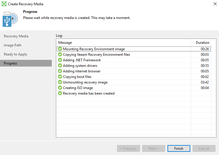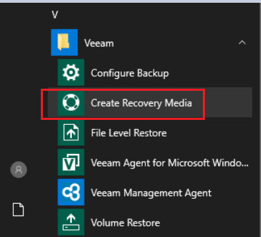 В ОС узла, на котором установлены агенты Veeam, запустить мастер создания загрузочного носителя (Пуск > Veeam > Create Recovery Media).