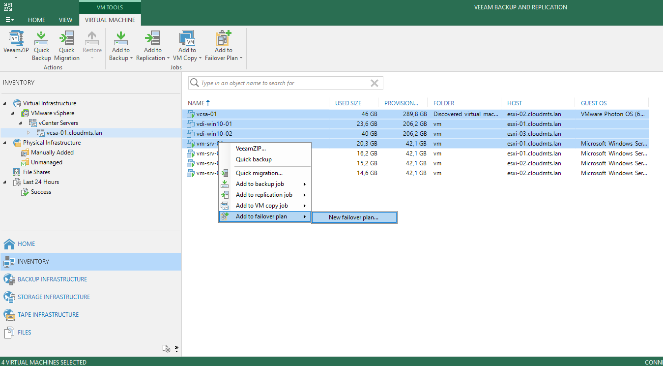 Добавление виртуальных машин в планы аварийного переключения