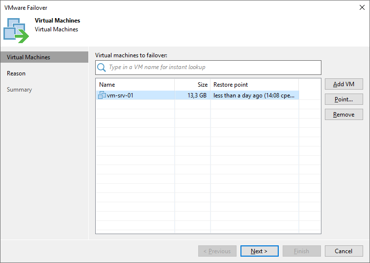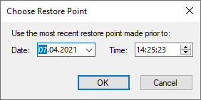 В окне Choose Restore Point выберите дату и время резервного копирования – Veeam Backup & Replication найдет ближайшую точку восстановления до введенного значения для каждой VM и переключится на нее.