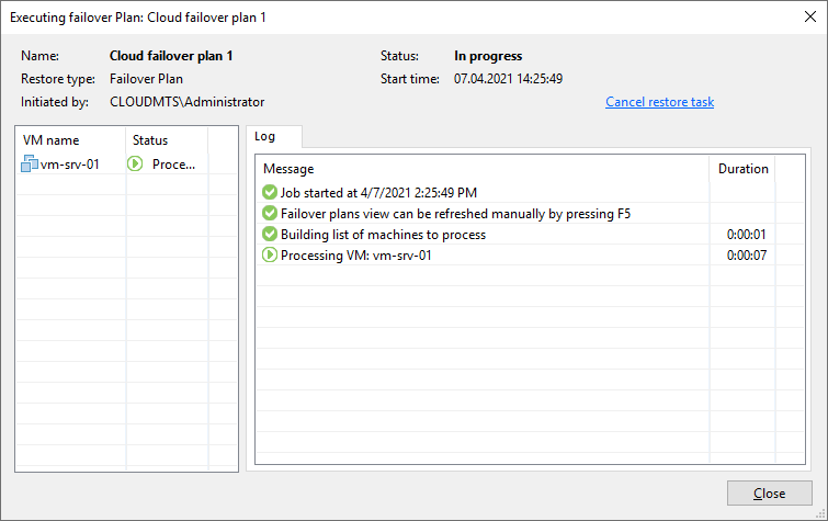 Failover Plan – план аварийного переключения на реплику виртуальной машины. Если в работе исходной VM в производственной инфраструктуре произошел сбой, возможно переключиться на реплику VM – быстро восстановить работоспособность приложений и служб. При этом реплика начнет выполнять роль исходной VM. В результате VM и приложения продолжат работать в штатном режиме уже через пару минут после аварии, доступ ко всем приложениям и службам возобновится практически без задержки.