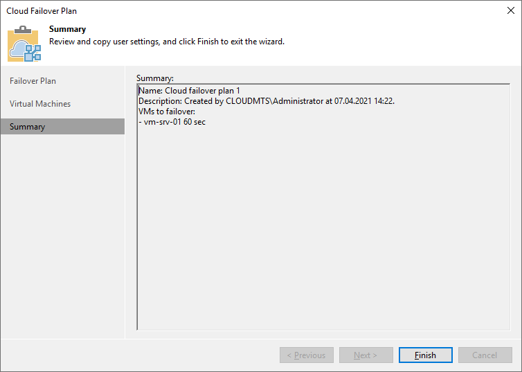 Завершите процедуру настройки плана переключения при отказе.