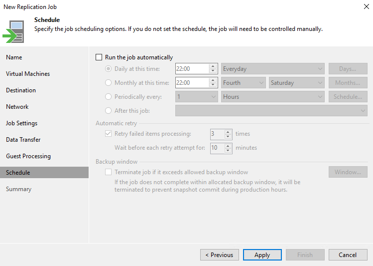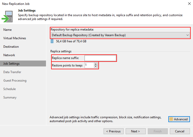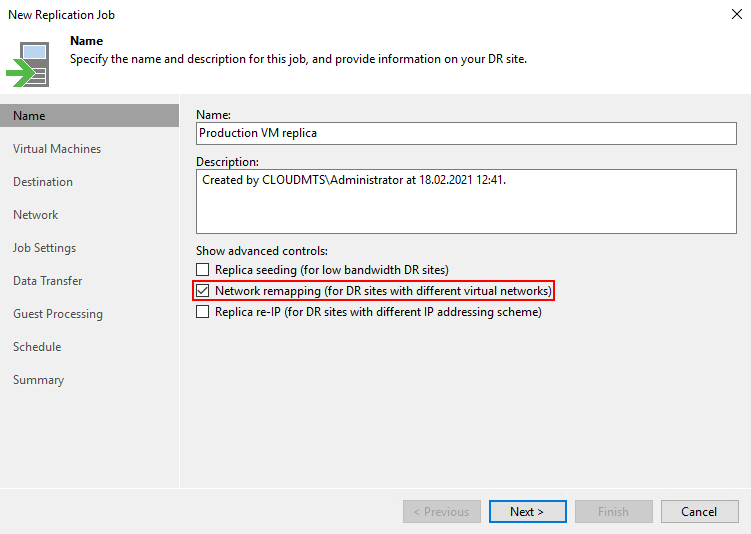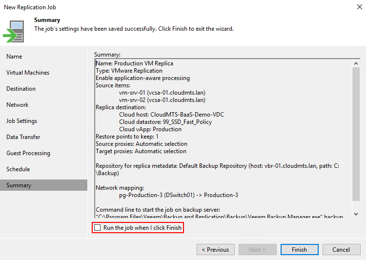Включите опцию Run the job when I click Finish для немедленного запуска репликации, если это необходимо.