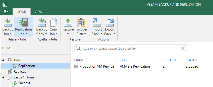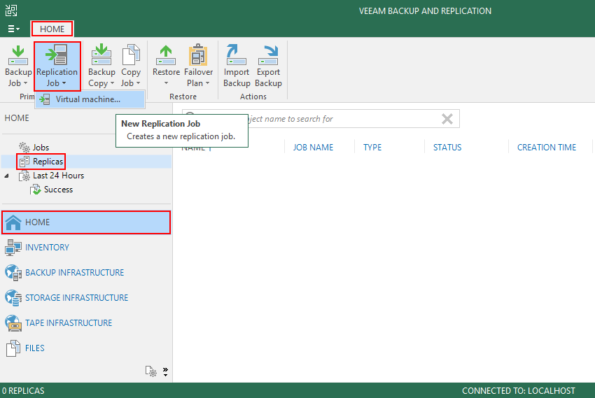 - На вкладке HOME нажмите на кнопку Replication Job и выберите Virtual machine.