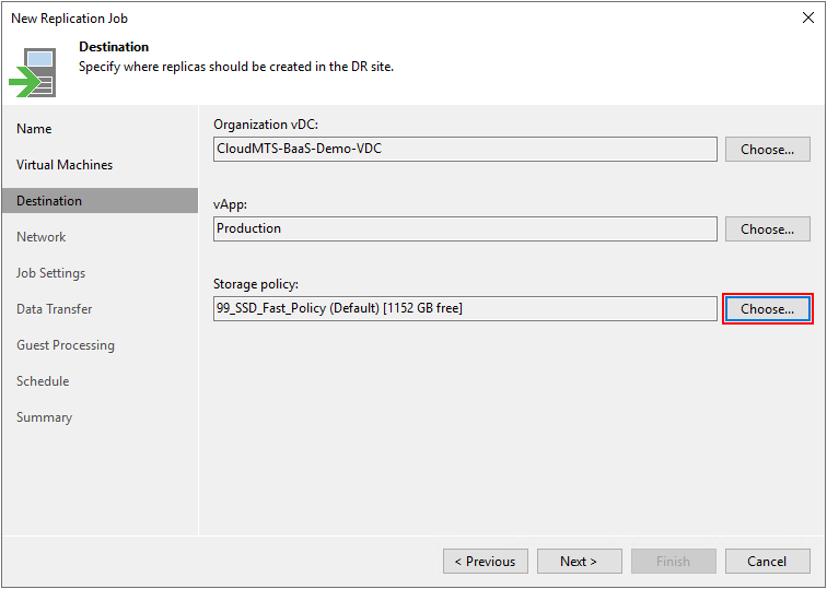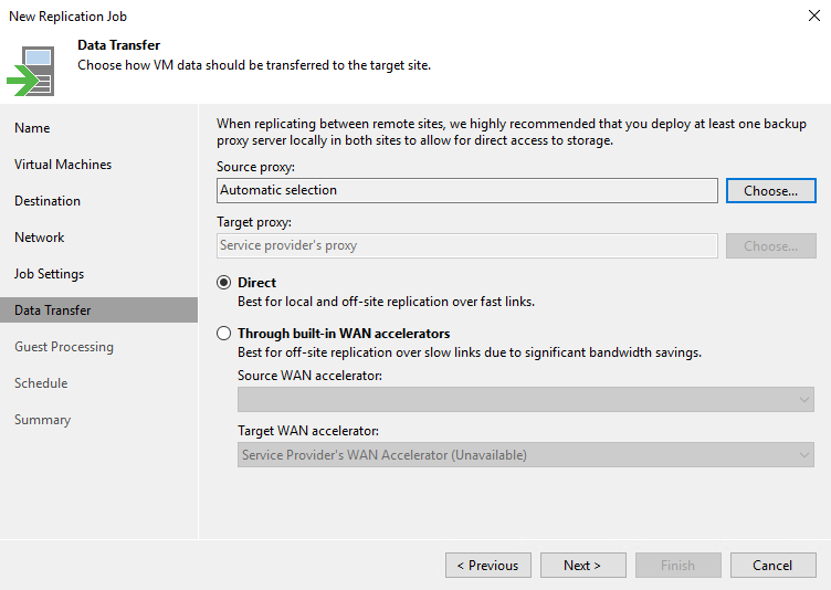 При необходимости измените настройки выбора прокси-сервера и WAN accelerator, если последний имеется на исходной площадке. Подробнее....
