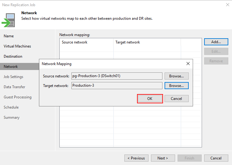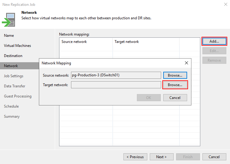 В окне Network Mapping нажмите на кнопку Browse для поля Target network.