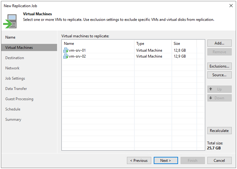 По умолчанию в качестве источника данных репликации выбираются работающие виртуальные машины: с них снимается снапшот, который реплицируется на новую площадку. В случае необходимости, для репликации могут быть использованы уже имеющиеся резервные копии.