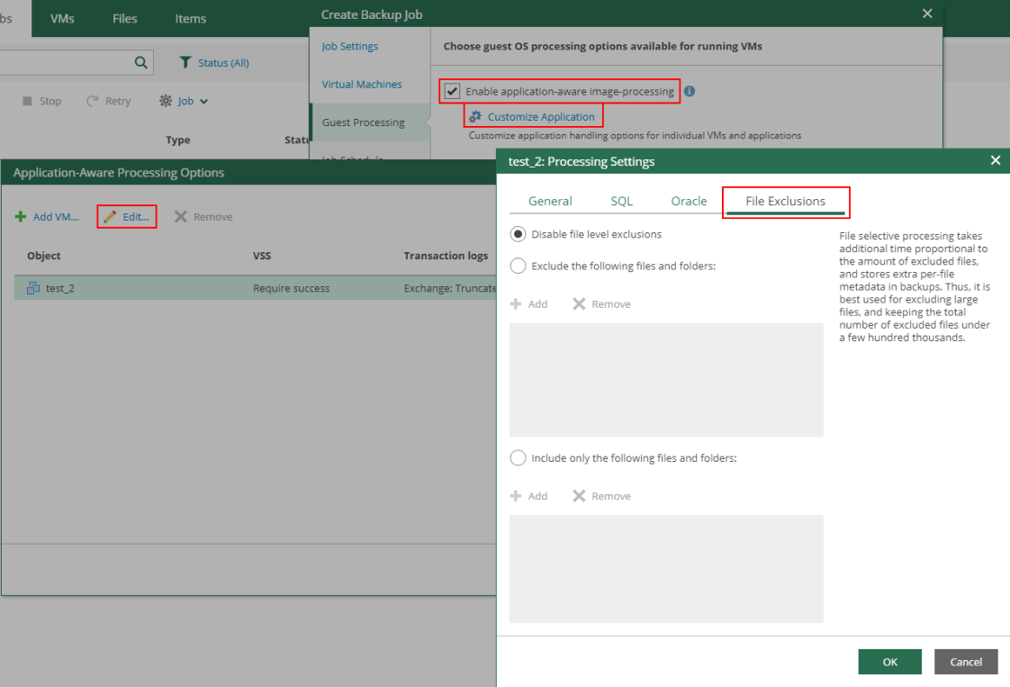 | Disable file exclusions | Отключить исключение файлов: резервное копирование всего содержимого гостевой файловой системы VM |