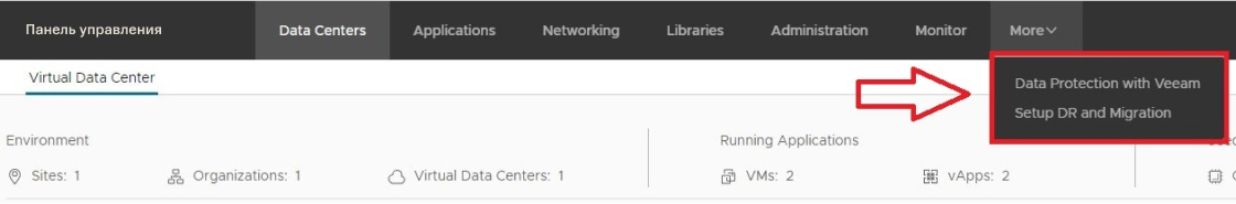 В выпадающем списке выберите Data Protection with Veeam.