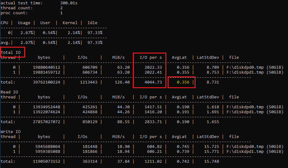 DiskSPD использует фиксированную размерность для отображения результатов времени отклика – миллисекунды.